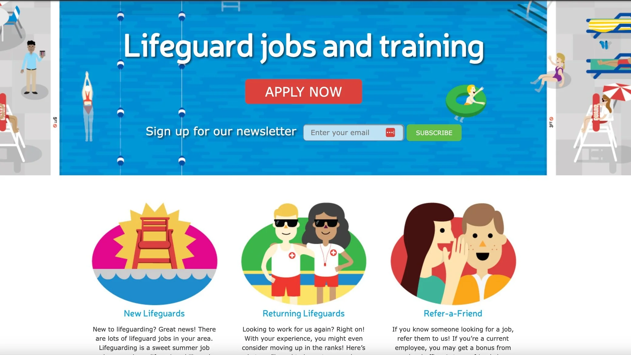 Previous lifeguards commented that the design style of the old website was too juvenile. They didn’t relate to the childlike illustrations and felt the site’s tone didn’t show the real-world importance of lifeguard training.