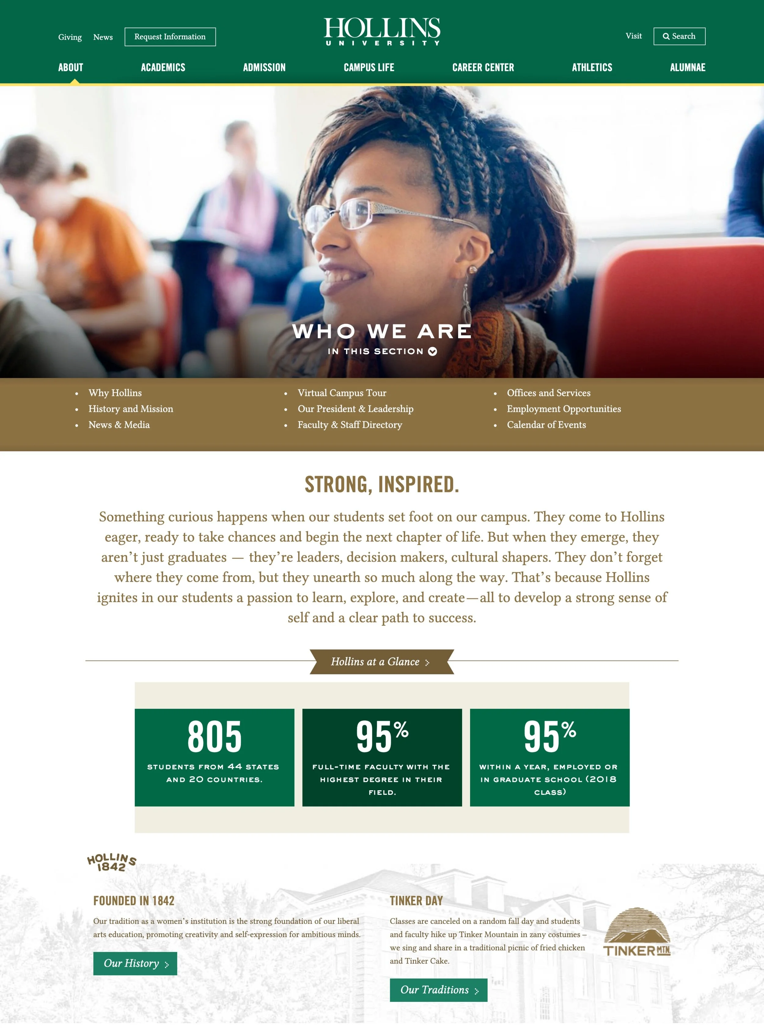Hollins already had great photography. But not all aspects of the university were on display. It was important to describe to prospective students that Hollins would not just be your ideal university, but your new home.
